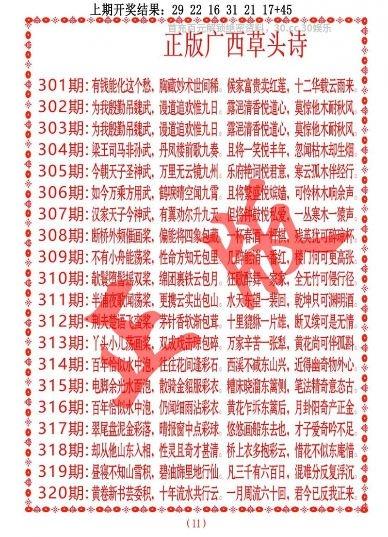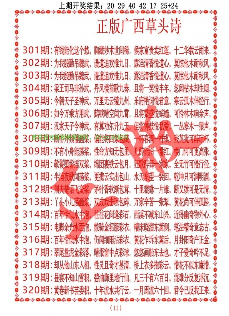 | 322期:〖高级①码〗20 |